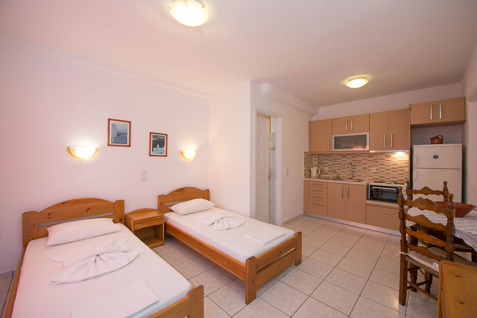 Το συγκρότημα είναι χτισμένο σε ιδανική θέση καθώς συνδυάζει φανταστική θέα στον κόλπο και στην παραλία των Καμαρών, εύκολη πρόσβαση στην παραλία και ησυχία.